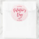 A classic finishing touch to any kids classroom treat bags or any homemade gift from your kitchen! These Pink Happy Valentines Day round stickers are a cute label to add to any Valentines Day treat giving. Don't forget to personalize with your name and add to cart!