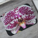 For Orchid lovers! Step out of the shower onto this medium size, cushy bath mat that features the photo image of a pink spotted Harlequin Phalaenopsis, commonly known as a Moth Orchid. A lovely, floral design!