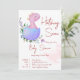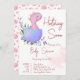 Pink hatching baby dinosaur inside broken egg baby shower invitation.