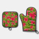 Pink Hawaiian Hibiscus Flower Pattern Oven Mitt & Pot Holder Set