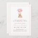 Pink Heart Balloon Teddy Bear 1st Birthday Invitation