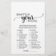 This pink heart calligraphy "what's in your phone" game is perfect for a rustic or modern baby shower. The front of the game card features "guess the right price", and the back of the card features "what's in your phone". The minimalist design for a baby girl features lovely typography and a subtle blush pink heart. Personalise the front of the card with the name of the mum-to-be and baby shower date. You can personalise the game questions by clicking the "customise" button.