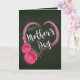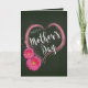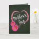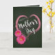 Lovely Happy Mother's Day illustration with a pink painted heart and pink gerbera daisy flowers with sparkling bokeh stars on an elegant dark background.