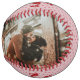 Pink Heart Happy Valentine's Day 2 Photo Boyfriend Softball. Personalised softball featuring 2 photos, modern and trendy typography saying Happy Valentine's Day and name on a pink heart pattern. Add your name and 2 photos and make a lovely gift for your boyfriend who loves sports.