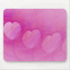 Pink abstract three heart digital art design centred on a mouse pad.