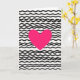 This design shows a large fuchsia heart in the center, standing out right away. The heart looks smooth and solid, like it’s floating on the page. Behind it, the background is filled with black wavy horizontal lines on a white base, and the lines have a slightly grainy look. The strong pink heart against the black-and-white pattern gives the card a modern, high-contrast feel that still reads as romantic 💘. There isn’t any text on the front, so the heart and the pattern do all the talking ❤️. Overall, it feels like a simple way to say “I care about you” without needing extra details.