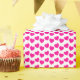 A wrapping paper with pink hearts on a white background. You can choose the background colour of your preference.