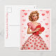 Send a little romance the old-fashioned way with this charming vintage Valentine pin-up postcard. Featuring a classic 1950s-inspired illustration of a glamorous woman in a pink heart-patterned dress, softly holding a polka-dot Valentine heart, this design captures timeless femininity and nostalgic love.