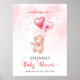 Pink Heart Teddy Bear Balloon Baby Shower Welcome Poster