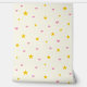 Pink Hearts and Golden Yellow Stars on Off White Wallpaper
