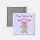 A cute design featuring a little brown teddybear holding a blue heart with a pink bow. A banner with pink ribbons and pink hearts above him.