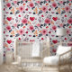 A vibrant pink hearts and flowers peel and stick wallpaper. Transform your space with this gorgeous design of pastel pink roses ,deep pink hearts and green and orange foliage and berries. Gives a lovely summery romantic feel to any room or office. Ideal for a nursery , engagement or wedding party.