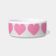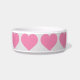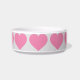 This feeding bowl features a repeating pattern of shapely pink hearts.