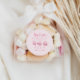 Cute and sweet Valentine theme bridal shower favour sticker featuring illustration of pink heart-shaped macarons. The text says "thank you for making our day so sweet."