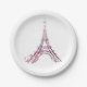 Pink Hearts & Butterflies Paris Eiffel Tower Party Paper Plate