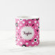 Rhoadie's Kitchen is the premier place for unique custom coffee mugs. Your loved one will feel the love with this pink hearts coffee mug. Showcasing a pink background with pink and black hearts, this mug can be personalised to your suiting. Place your order today.