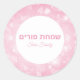 Pink Hearts Hebrew Simchat Purim Classic Round Sticker