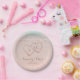 Pink hearts in the sand destination beach wedding paper plate