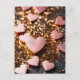 pink hearts on golden glitter ground for valentine postcard