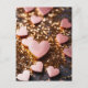 Pink hearts on golden glitter ground Valentine's Postcard