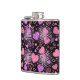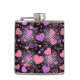 Pink Hearts Pattern 01 Black BG Hip Flask