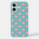 This iphone case features a repeating pattern of pink hearts on a light green background.