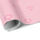 This wrapping paper features shapely pink hearts with a white-washed centre on a pink background.