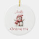 Adorable Snowman with hearts personalised with the name and Christmas year.
