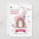 Adorable pink birthday invitation for any child who loves hedgehogs.