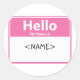Pink Hello My Name is, <NAME> Classic Round Sticker