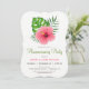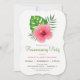Tropical summer Hawaiian housewarming party celebration invitation. Invite features pink hibiscus flowers and green leaves.