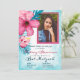 Pink Hibiscus, Teal Blue Bat Mitzvah Invitation