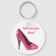 Fashionistas take a look! This is a wonderful keychain for any girly girl. It features a pink high heel shoe with the text Will work for shoes! Carry your keys in style!