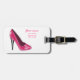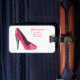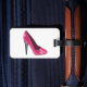A great luggage tag that will let you stand out from the crowd. It features a girly pink high heel shoe. You customise the text at the top.