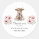 Show your gratitude in style with our Pink Highland Cow Birthday Party Thank You Sticker! Featuring the adorable highland cow surrounded by floral accents, this charming sticker is the perfect way to add a personal touch to party favours, thank you cards, or gift bags. It's the perfect way to express appreciation with a rustic, whimsical flair.