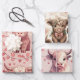 Pink Highland Cow Valentine Hearts Roses Wrapping Paper Sheet