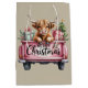Pink Highland Cow Xmas Girly Fluffy Cow In Truck Medium Gift Bag