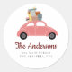 Pink Holiday Car with Stack of Gifts Address Classic Round Sticker