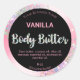 Pink and black labels with holographic glitter on the border. The "Body Butter" text has a sparkly holographic glitter style. PLEASE NOTE: No holographic glitter will be used on these stickers. They will not shine or reflect any light or colour. The shiny effects will simply be printed with standard, non shiny ink.