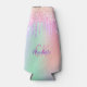 A rainbow, unicorn coloured holographic background in pink, purple, and mint green. Decorated with pink and purple drips, paint dripping look. Personalise and add a name and monogram initials. The name is written in purple with a modern hand lettered style script. the monogram letters in white.  Perfect for birthday parties, bridal showers and bachelorette parties.