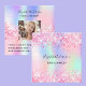 A purple, pink, mint green holograhic background. Decorated with pink confetti. Personalise and add your name, title, profile photo, phone number, mail, website adsress, qr code to your website or social media account.