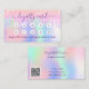 Back: Personalise and add your name, title, phone number, mail, website adsress, qr code to your website. Purple letters. Without glitter on the back.