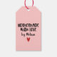 A personalised "homemade with love" gift tag on a pink coloured background. Make it yours by adding your own name. A pretty finishing touch for all of your handmade gifts. Designed for you by Blackberry Boulevard.
