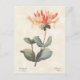 Postcard with a digitally cleaned and enhanced vintage botanical image of pink honeysuckle on a light gold parchment background. Illustrated by renowned Belgian painter and botanist Pierre-Joseph Redouté for Choix des Plus Belles Fleurs in 1833. Manuscript captions reproduced in original placement and similar fonts.