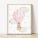 Pink Hot Air Balloon, Animals, Bear, Girl Nursery Poster