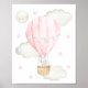 Pink Hot Air Balloon, Animals, Bunny, Girl Nursery Poster