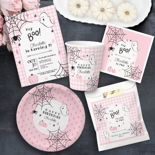 Pink Houndstooth Halloween Cute Ghost 2nd Birthday Napkin