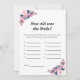 Pink How Old was the Bride Bridal Shower Game Card