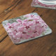 Protect your table top from water marks and stains with this set of 6, glossy beverage coasters featuring a photo image of the little, pink flowers of a Hoya plant, commonly known as the Wax Plant. A lovely, floral design!