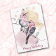 Two pink and grey little hummingbirds perch together on a branch on the front of this birthday card. Behind them is a paint splatter of gold and pink, with rose gold embellishment. The script text at the bottom says "Happy Birthday". The inside of the card has two custom text fields, which you can use to say anything you'd like. This elegant and pretty card is appropriate for anyone.